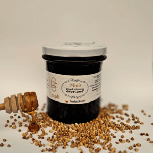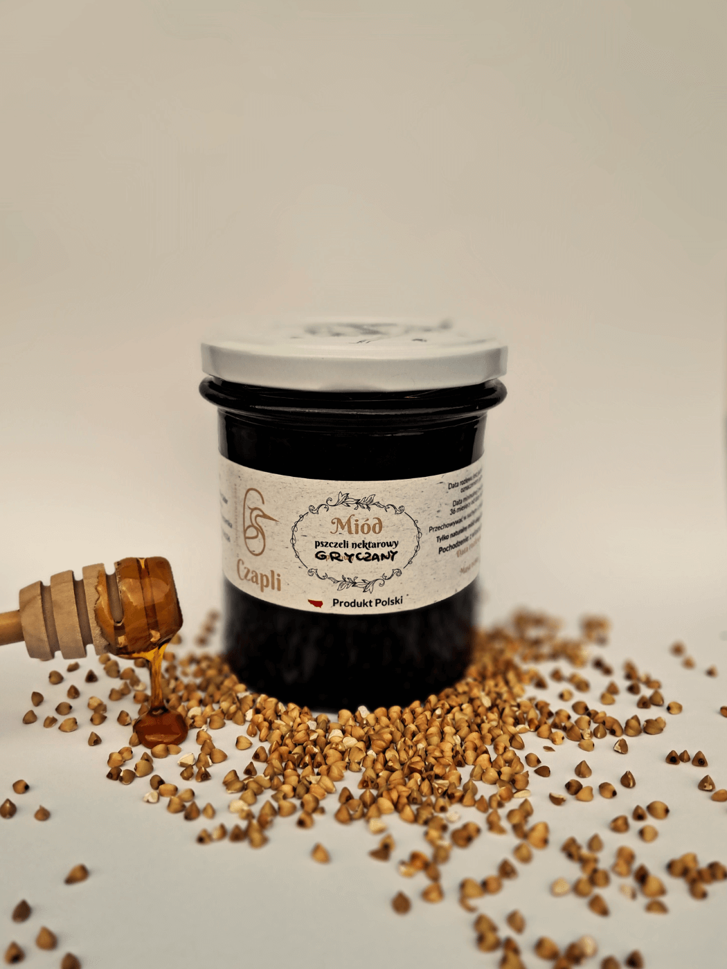 Pełen cennych minerałów i witamin, aromatyczny miód gryczany, dla prawdziwych smakoszy. Sprawdzi się do smarowania kanapek, pomieszania z twarożkiem, przygotowania sosów typu vinegret i innych zastosowań w kuchni, gdzie potrzebna jest naturalna słodycz, pełna zdrowia i niepowtarzalnego smaku.