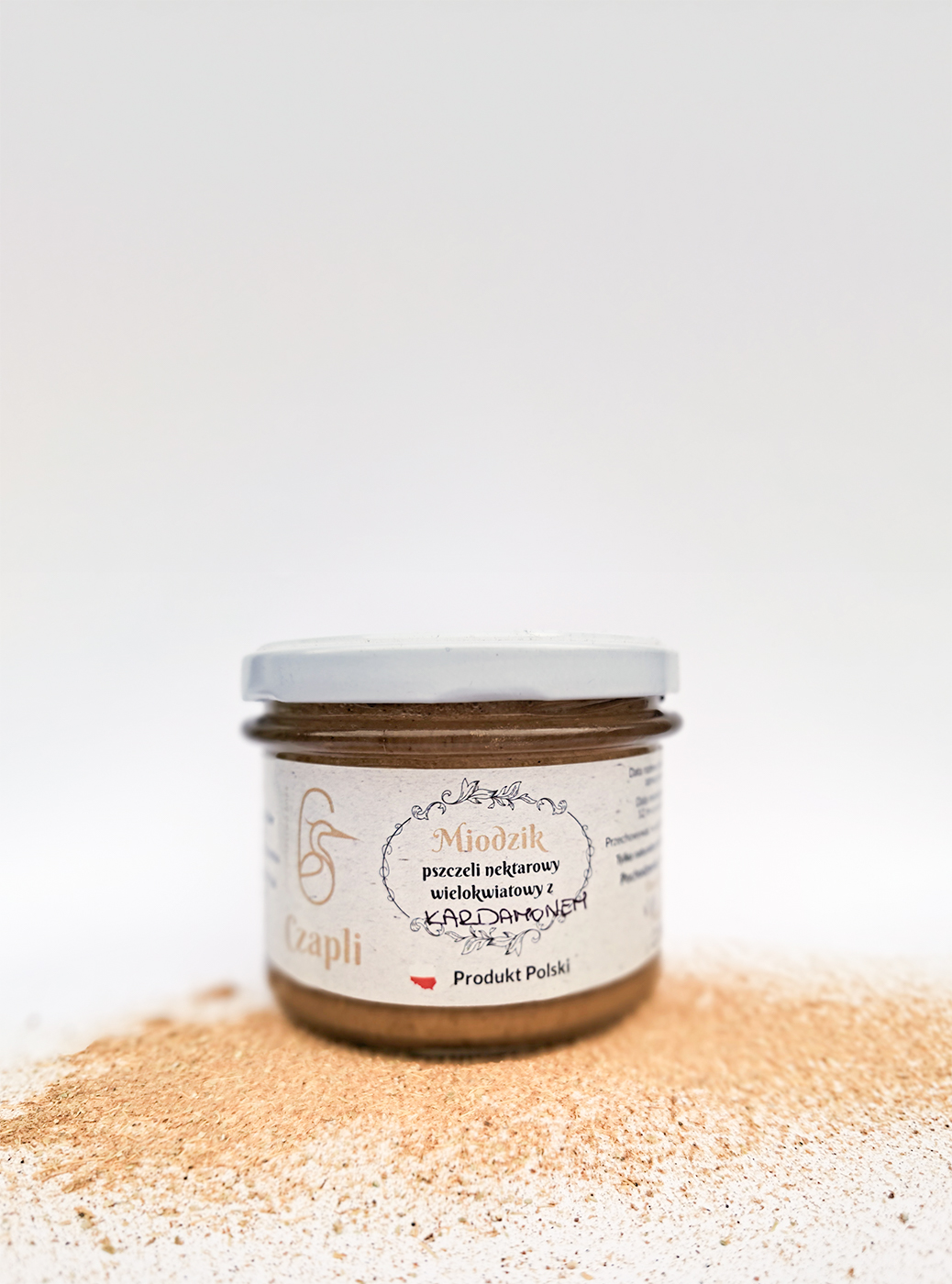 Skład: miód wielokwiatowy, kardamon drobno mielony